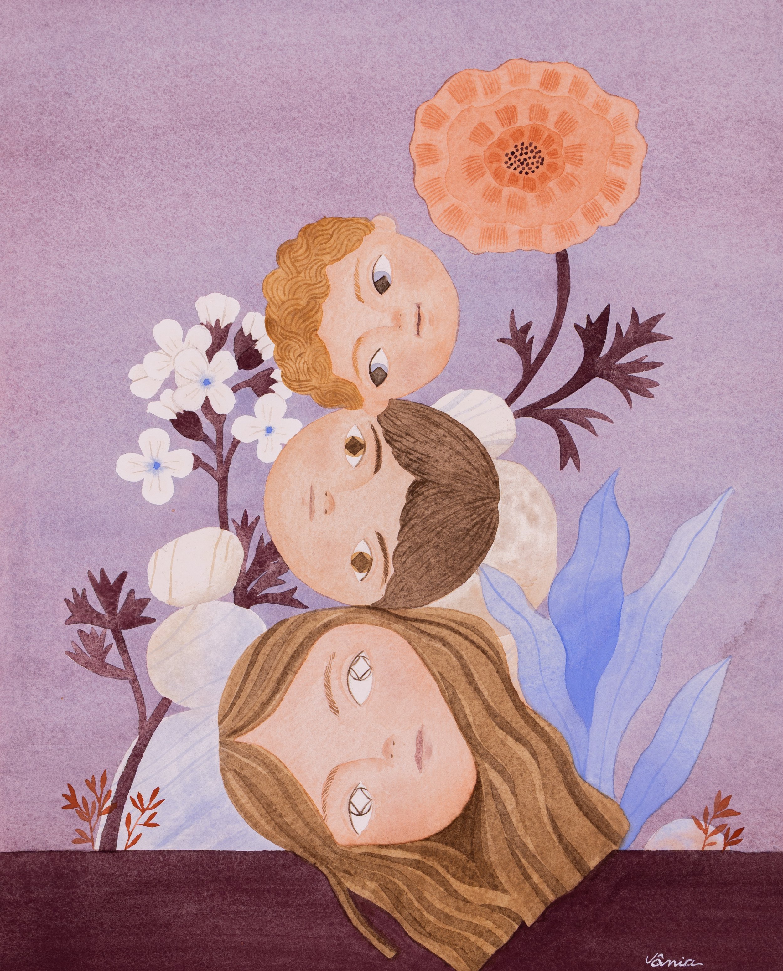This watercolor piece reflects on the mental and emotional weight that can accompany motherhood, and the constant search for balance within it.